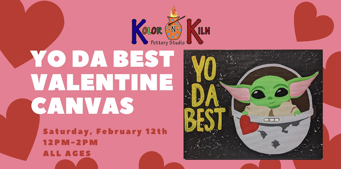 Yoda Best Valentine's Day Canvas Class Saturday, February 12, 2022 12:00 PM 2:00 PM 12:00 14:00 Kolor-N-Kiln Pottery Studio 1230 Robinson Centre Drive Pittsburgh, PA, 15205 United States (map) Google Calendar ICS CLICK HERE to register!